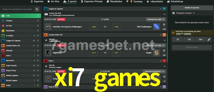O xi7 games oferece uma grande seleção de opções de apostas em e-sports com probabilidades competitivas
